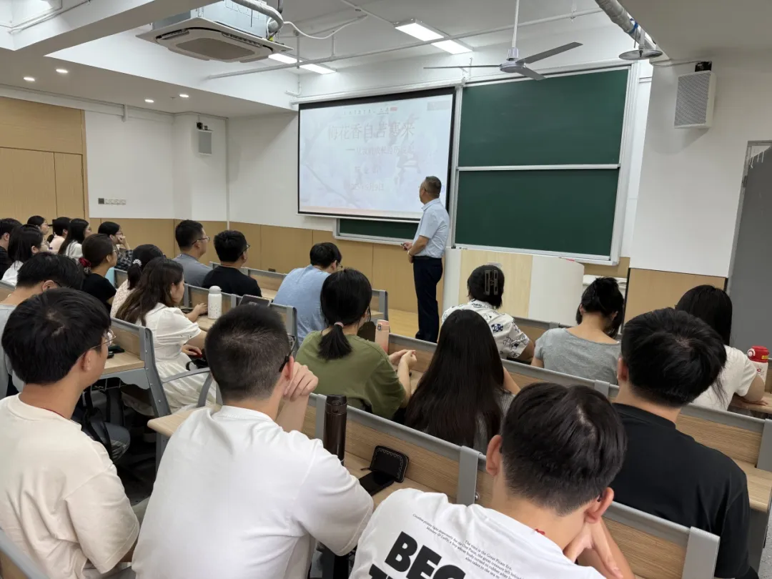陈金如教授为2025级研究生新生作了一场题为“梅花香自苦寒来”的始业教育讲座。他结合自身大学求学的经历,生动阐释了艰苦奋斗与持之以恒精神的时代价值。