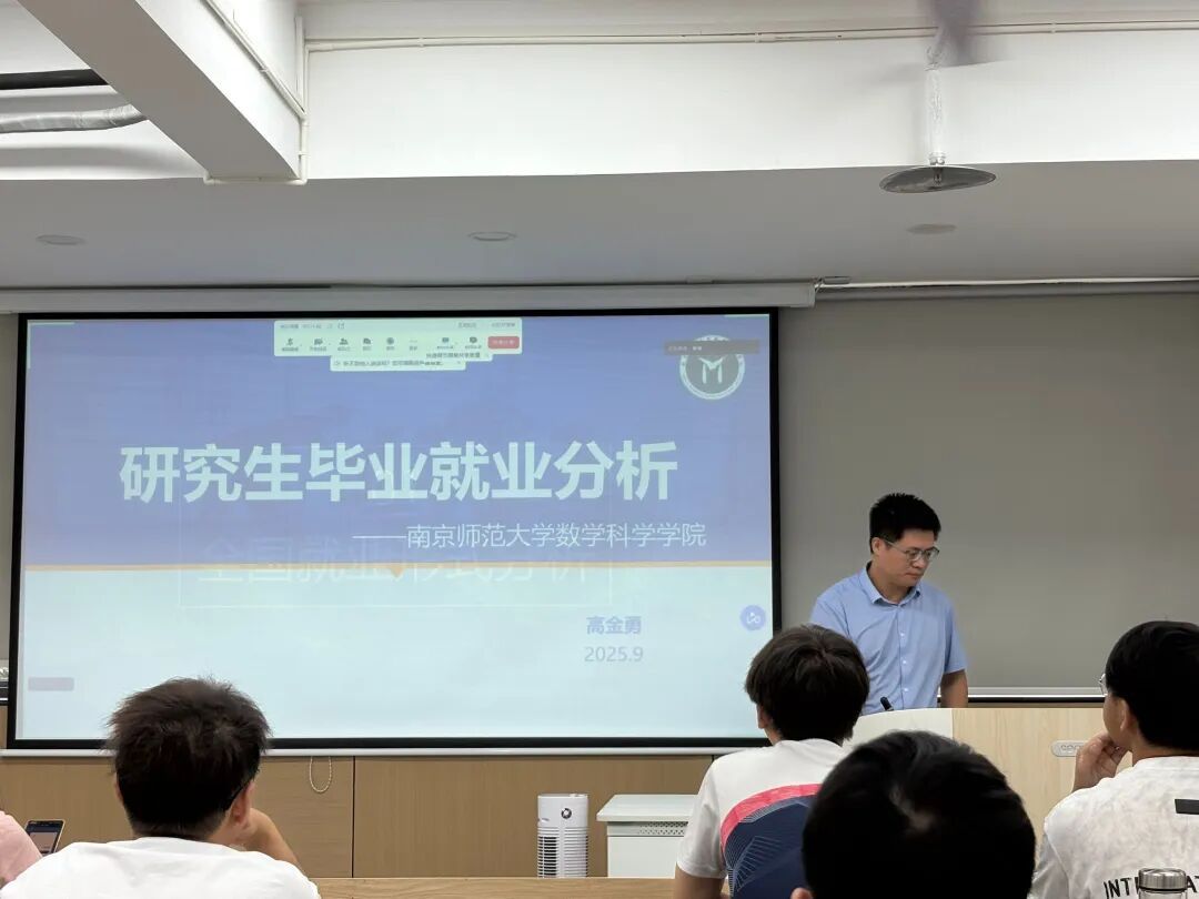 针对当前就业形势与学院就业特点,高金勇向新生提出四点务实建议:一是理性审视未来,深思人生规划。他鼓励新生结合个人兴趣、能力与行业趋势,避免盲目跟风;二是提升综合能力,超越唯学历论。他着重强调在夯实数学专业基础的同时,研究生应主动学习跨学科知识、锻炼实践能力,以核心技能增强就业竞争力;三是拓宽就业视野,降低地域期待。他引导新生关注非一线城市、新兴领域的就业机会,打破地域局限;四是做好职业规划,动态调整策略。他建议新生制定阶段性目标,根据行业变化与个人成长及时优化规划,保持职业发展的灵活性。