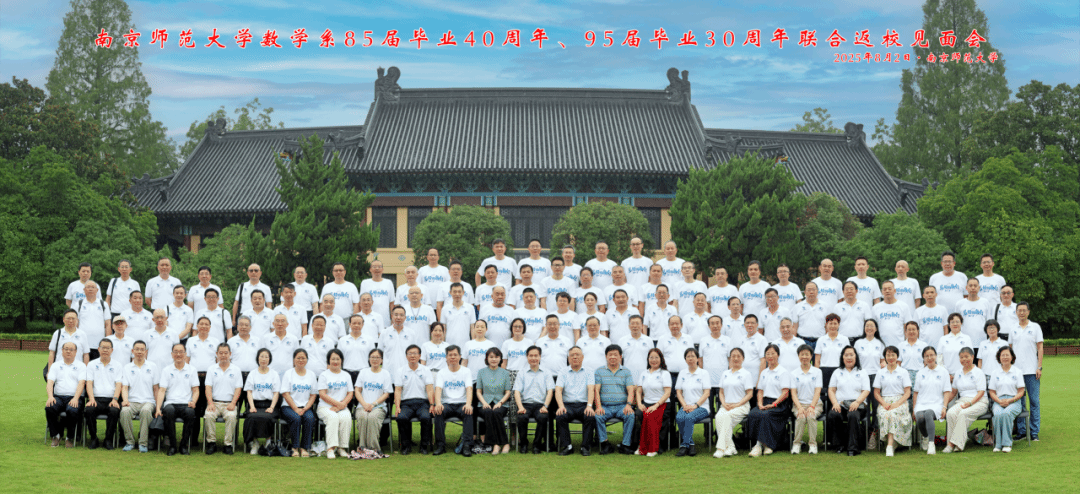 8月2日上午,数学系85届、95届返校同学于大草坪相聚,共同合影留念。这可能也是南师大,甚至是全国高校“首show”,一个系科的两届同学合影留念。
