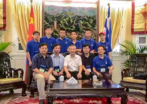 2004年中国驻希腊大使(前排中间)在大使馆接见国际数学奥林匹克(45IMO)中国队(前排左二领队陈永高教授)