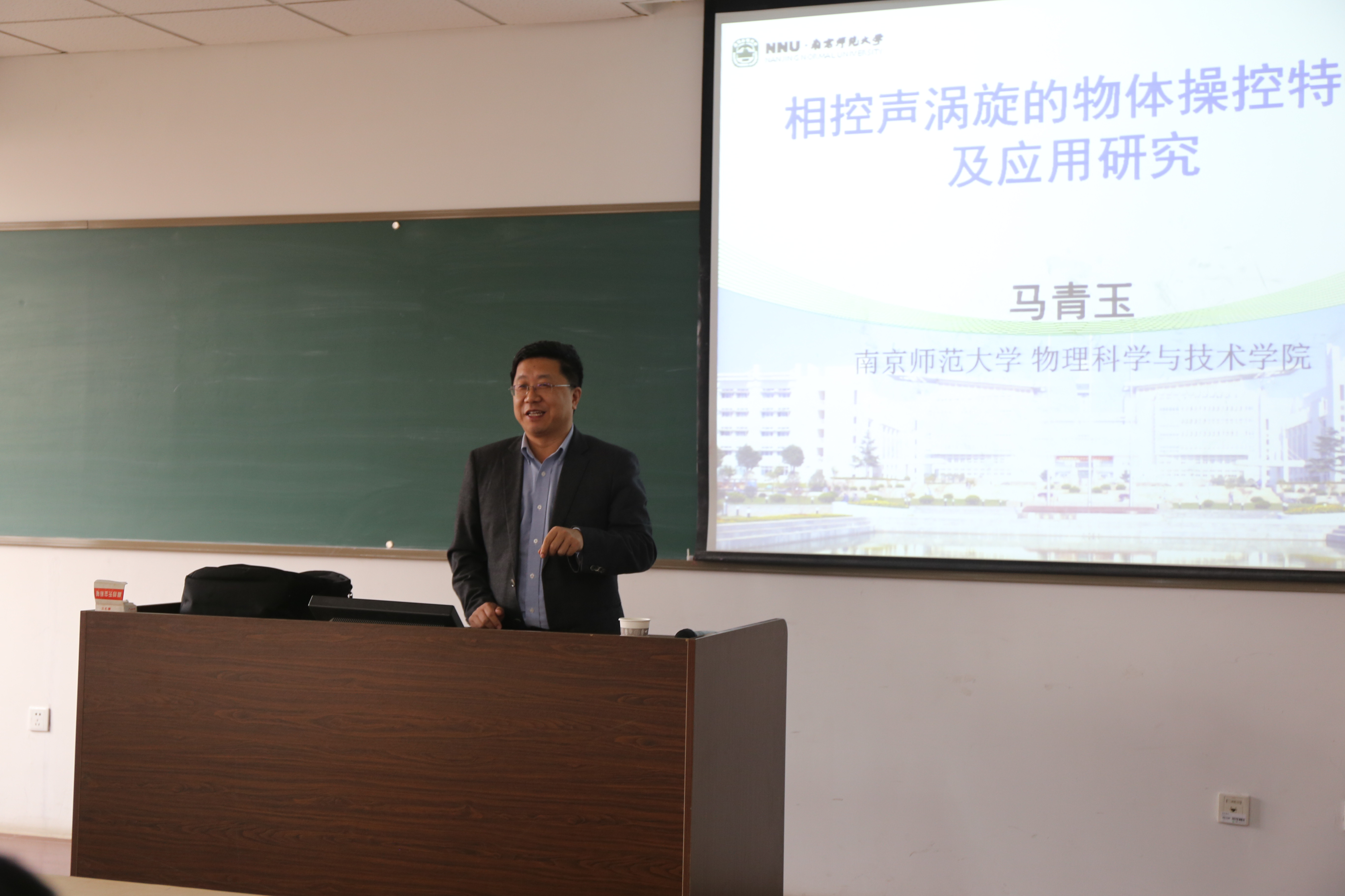 在本次报告会上,马青玉教授作了题为“相控声涡旋的物体操控特性及应用研究”的学术报告。马青玉教授首先介绍了利用相位编码技术形成可控声涡旋的基本原理以及该项技术在实际医疗的广阔应用前景,然后对多种编码方法产生的声涡旋分别从模拟和实验的角度进行了详细地展示和比较。