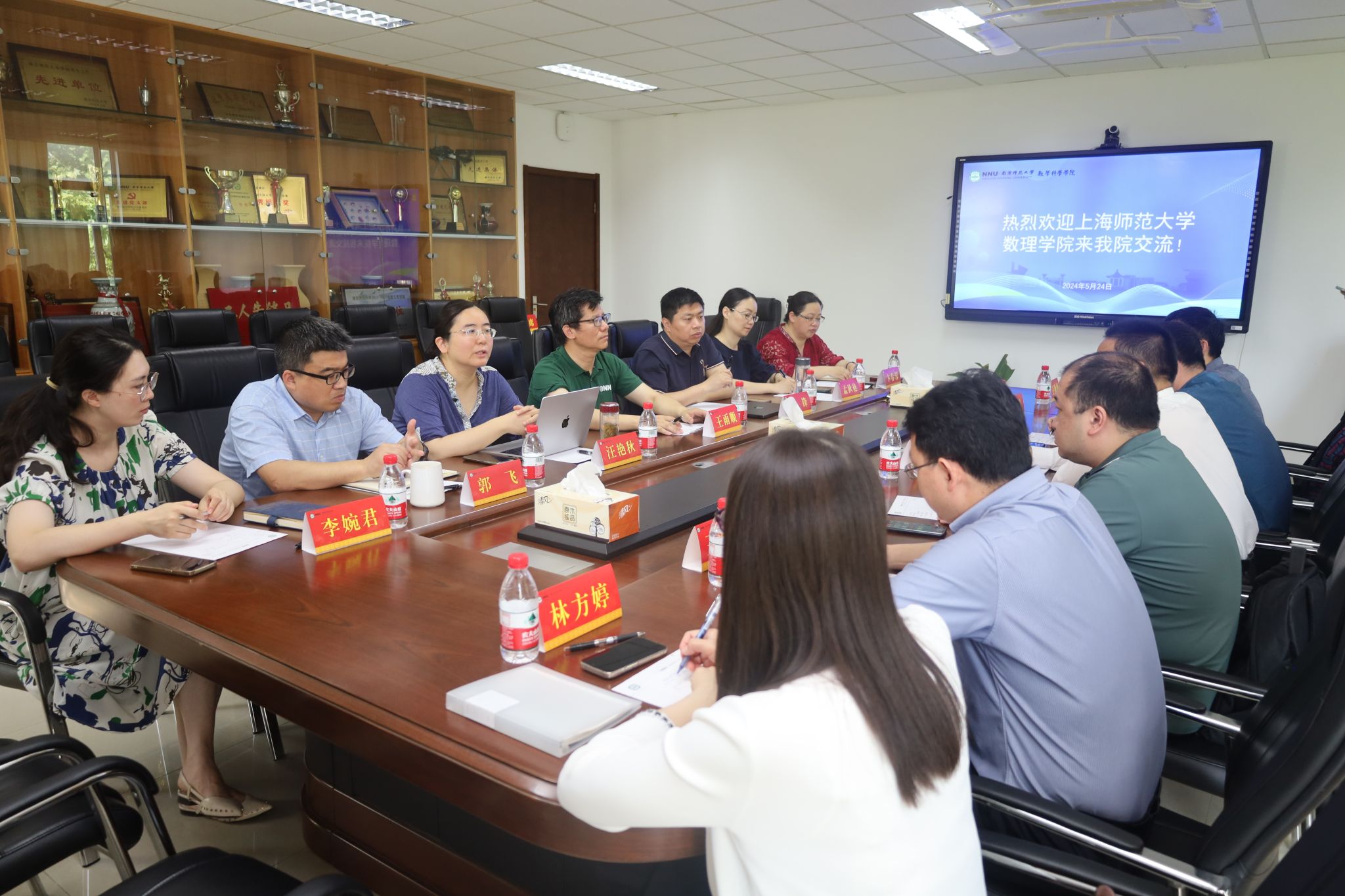 调研交流会上,博彩论坛党委书记王雨顺、院长汪艳秋代表学院对上海师范大学数理学院调研组的到来表示了热烈欢迎。双方就学院发展历程、党建工作、人才培养、教学科研和学科发展等方面分别进行了深入交流和讨论。