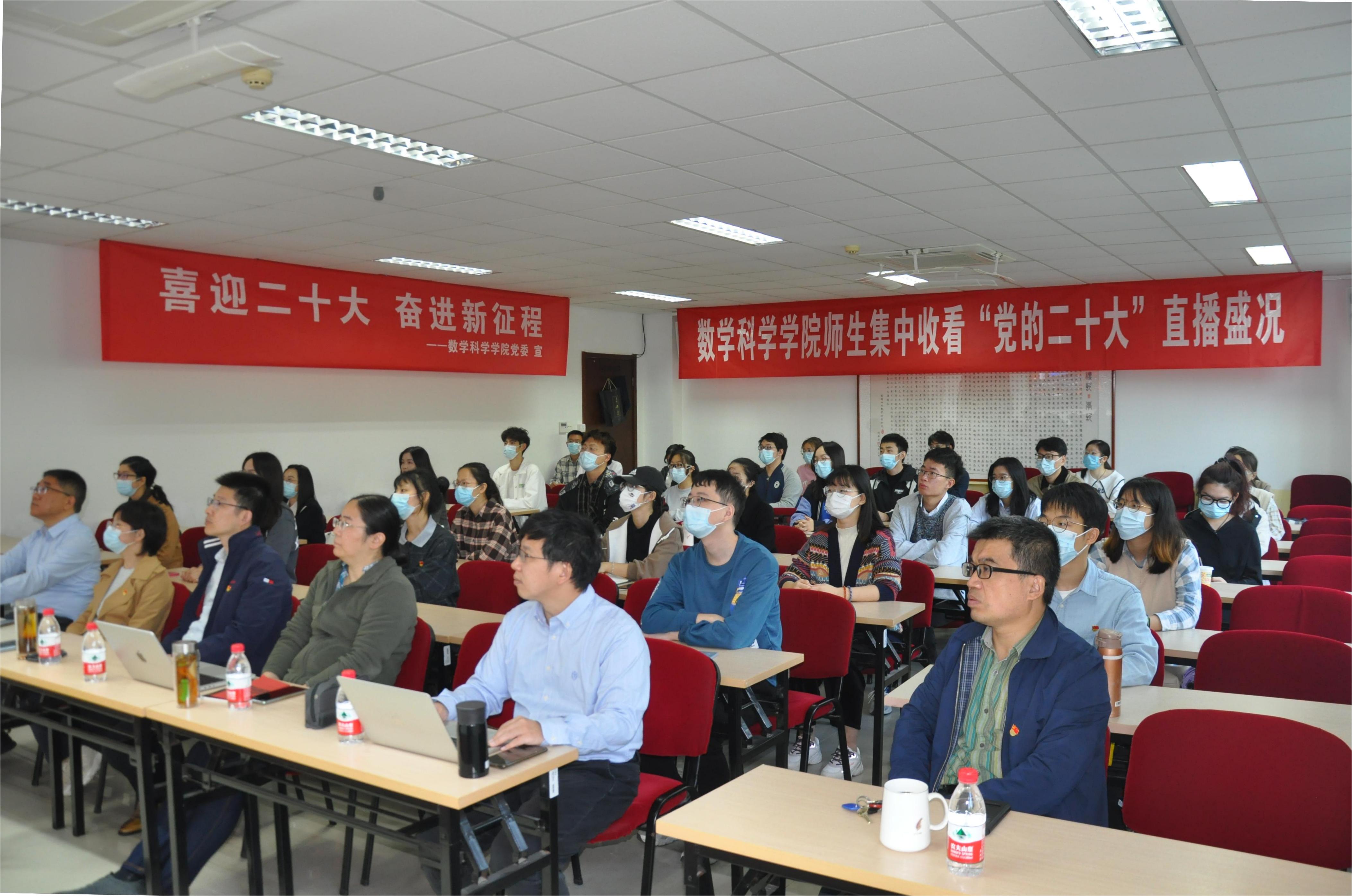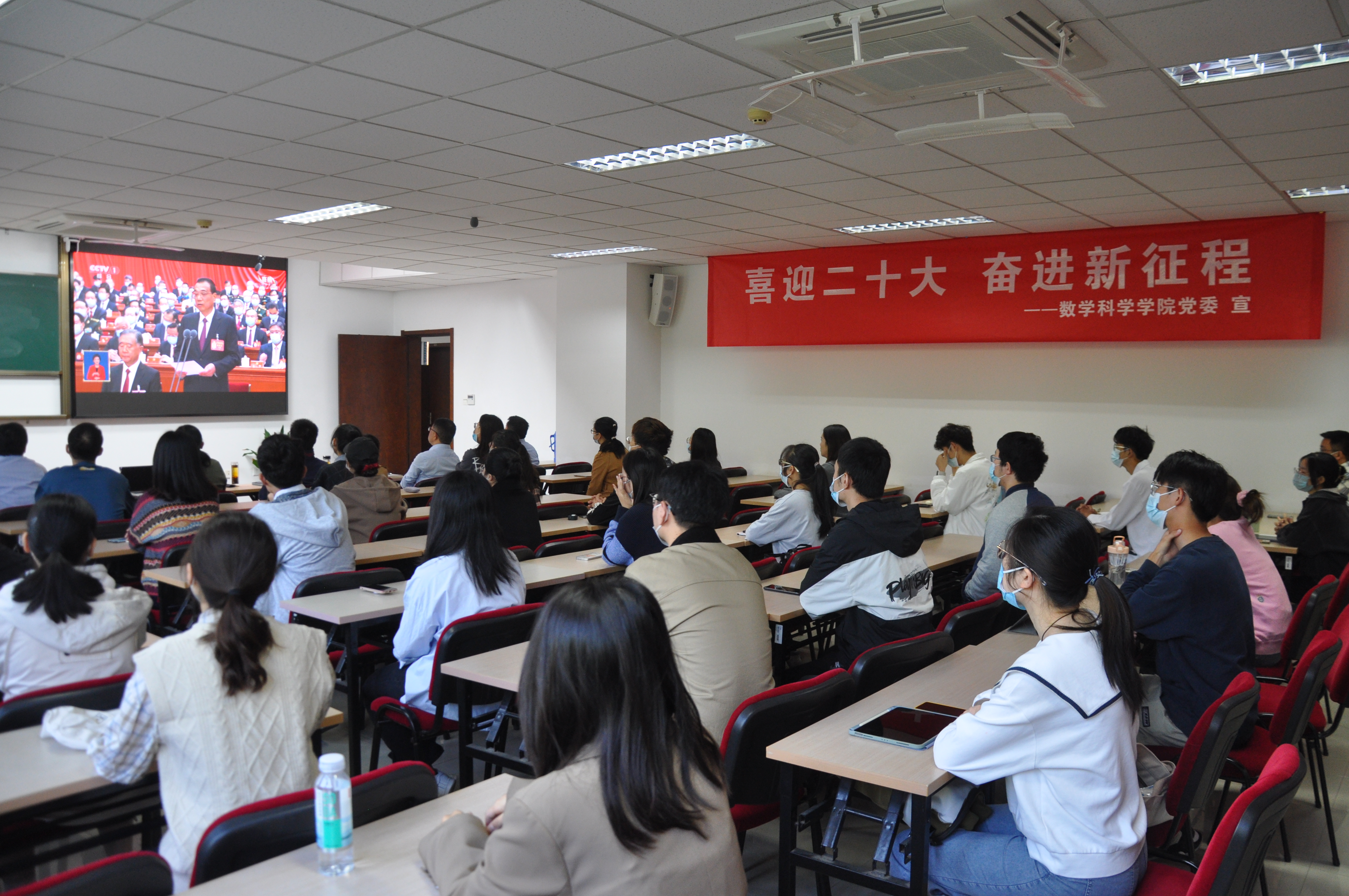 党委积极组织全院师生以多种方式收听收看党的二十大开幕会盛况。在行健楼526室,院党委书记徐剑波、院长汪艳秋及全体院党政班子成员,教师代表、本科生、研究生代表齐聚一堂,共同收看大会直播。其他师生们也纷纷在自己家中、办公室或宿舍里共同观看。近两个小时的报告过程中,大家通过屏幕深切感受到了人民大会堂内庄重热烈的现场氛围,报告中那些令人温暖、直抵人心的话语,也让数科院广大师生振奋人心,激动不已。