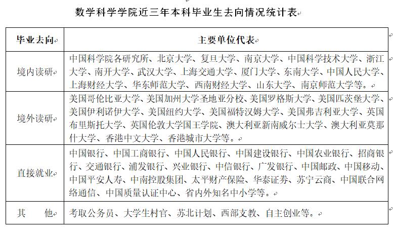 近三年本科毕业生就业率达98%以上,学院2018届本科毕业生国内外读研升学率达55%。毕业生就业主要进入金融机构、教育部门、各类大型企事业单位等。