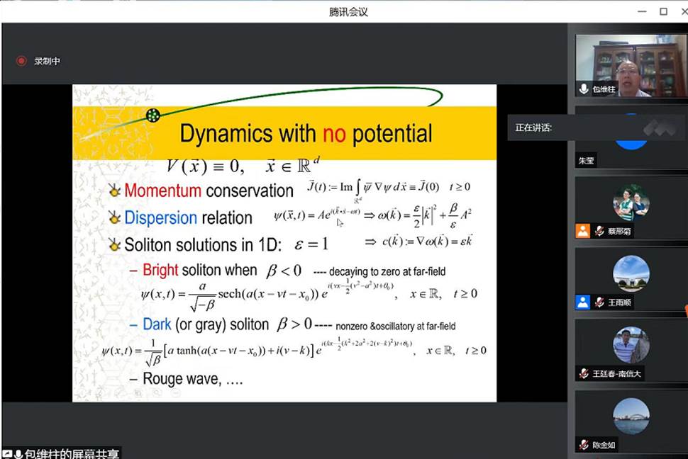 学术年会分两天进行,8月7日是特邀报告会。分别邀请了新加坡国立大学包维柱院士、中科院数学与系统科学研究院周涛研究员、北京航空航天大学韩德仁教授、中国科学院数学与系统科学研究院刘亚锋研究员和博彩论坛汪艳秋教授、张英楠副教授、姜波副教授作学术报告。报告会结束后,召开了2022年度实验室建设研讨会。