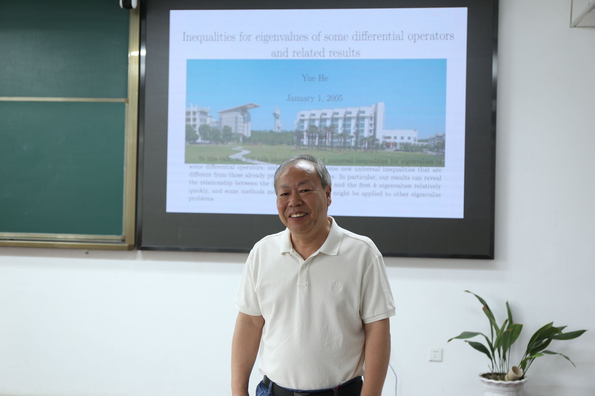 6月4日下午,博彩论坛本学期第八场双周三学术报告会在行建楼学术活动室526举行。此次报告会主讲人是应用数学研究室的何跃副教授,报告的题目是“Inequalities for eigenvalues of some differential operators and related results”,数学研究所副所长贺伟教授主持了本次报告会。副所长吴奕飞教授以及部分研究生参加了本次报告会。