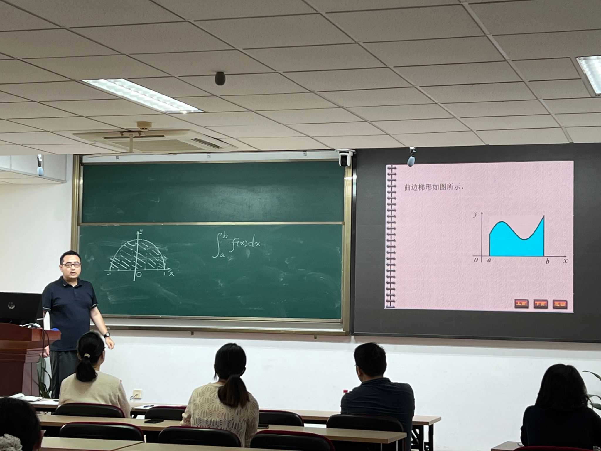 徐缘副教授借助多媒体技术,围绕《第五章定积分》打造直观化课堂。以“割圆术”为历史引线,结合“求曲边梯形面积”“求变速直线运动路程”两大经典实例,自然引出定积分核心问题;随后通过PPT中的动态图形演示,清晰呈现定积分“分割、求和、取极限”的定义推导过程,借助小矩形数量变化与面积近似效果的对比,让抽象概念具象化。